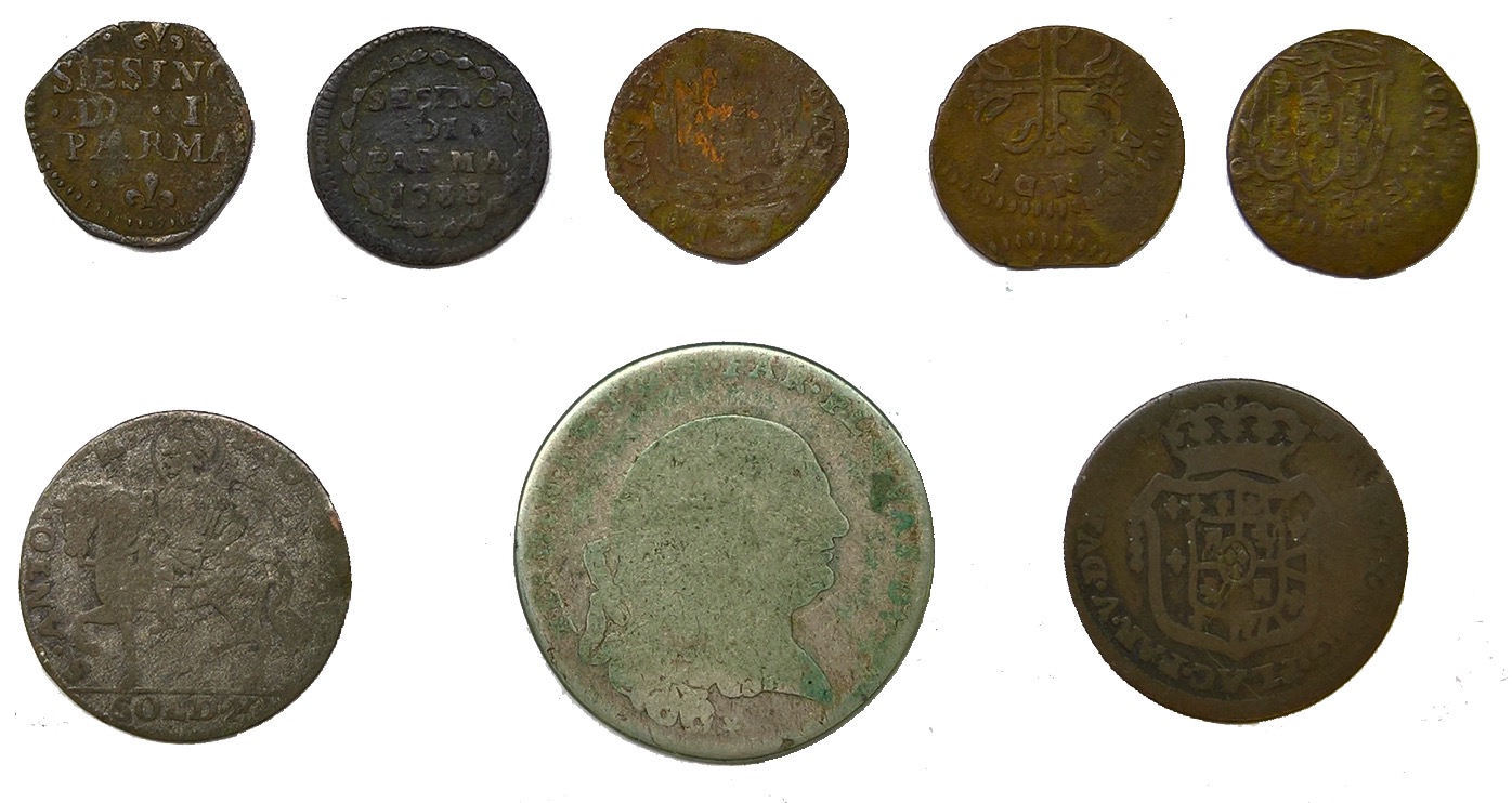 1788 ; 3 da 1 sesino Francesco Farnese; 6 lire 1796; 10 soldi 1794. Conservazioni varie